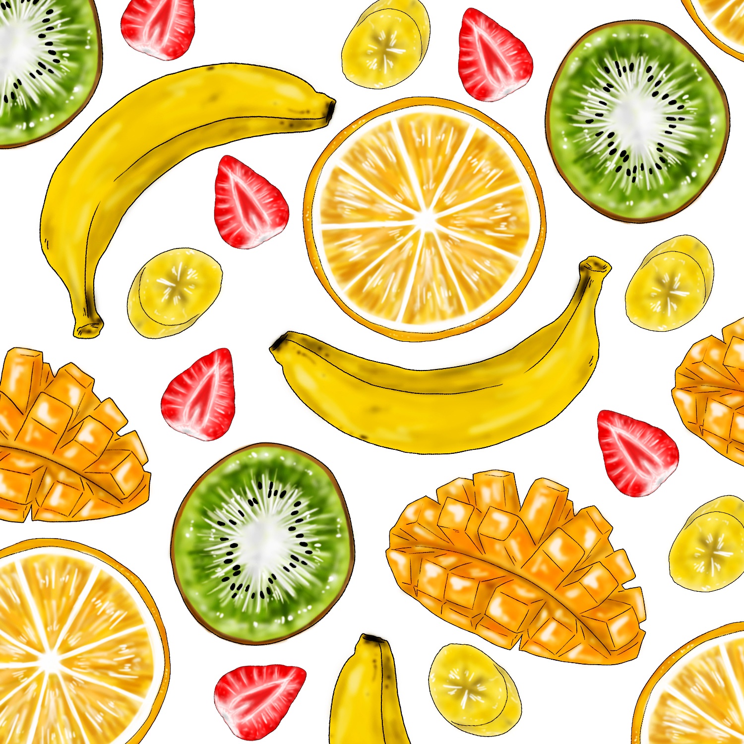Moe 断面図良き フルーツ 断面図 果物 果物イラスト 絵 イラストレーション マンゴー イチゴ バナナ キウイ フルーツ柄 お絵かき デザイナー Fruits Fruitsillustration Illustration Delicious Mango Kiwi Strawberry Banana